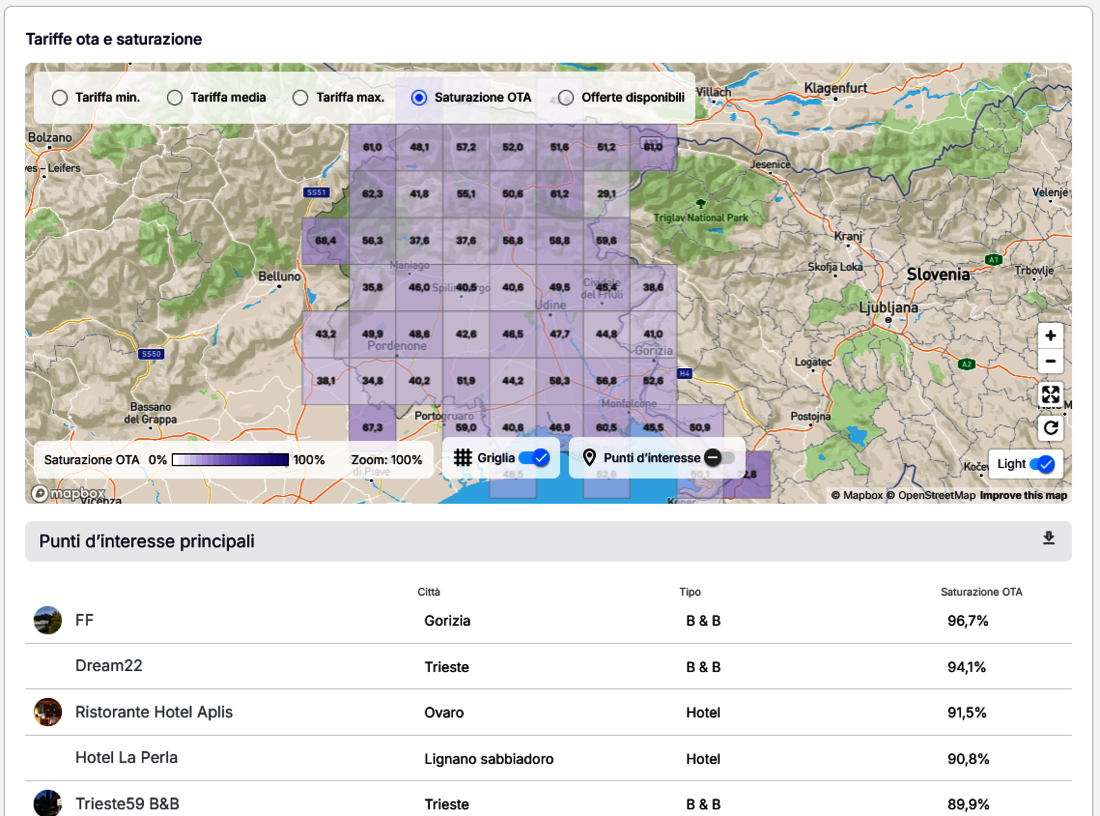 Mappa relativa ai prezzi e l’occupazione delle OTA (Piattaforma DataAppeal).
