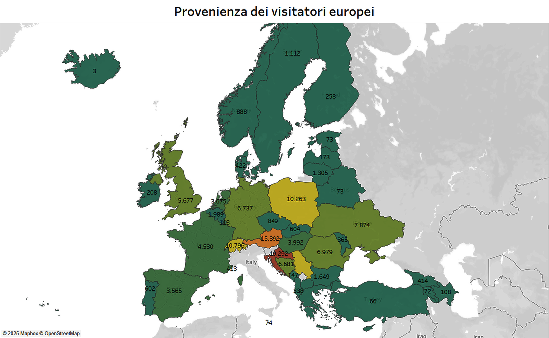 Provenienza dei visitatori europei, 2025 (elaborazione degli autori).
