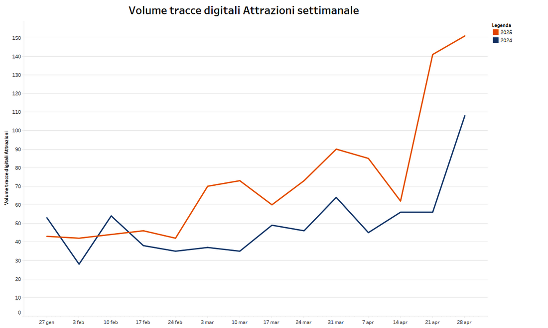 Volume delle tracce digitali per l’ambito ‘Attrazioni’ (elaborazione degli autori)
