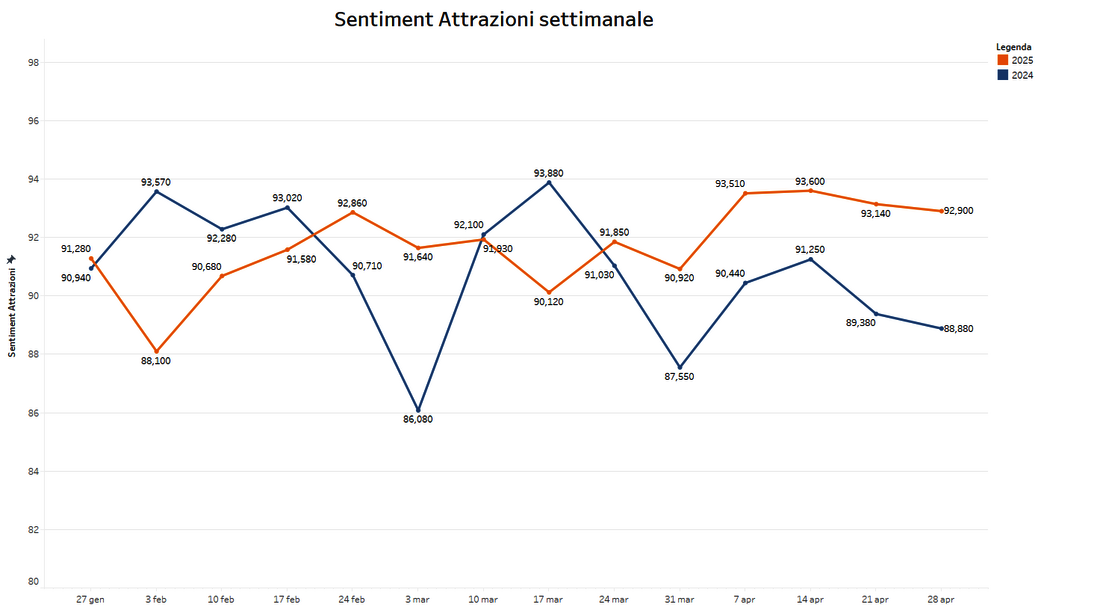 Sentiment legato all’ambito ‘Attrazioni’ (elaborazione degli autori).