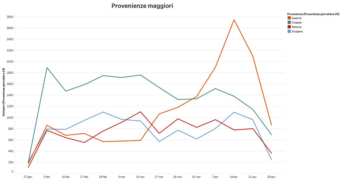Provenienze straniere con più arrivi ad esclusione della Slovenia (elaborazione degli autori).